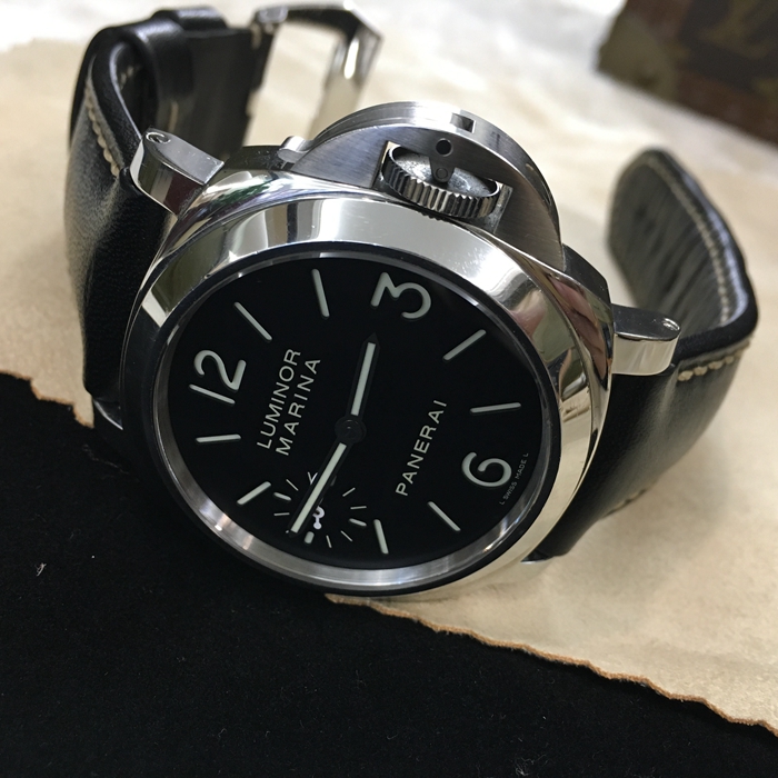 Panerai 沛纳海 LUMINOR系列,PAM 00111。44毫米表径,精钢表壳,黑色面盘,9点位置设小秒盘,手动上弦机械机芯,动力储备56小时。专柜定价:44600元。
