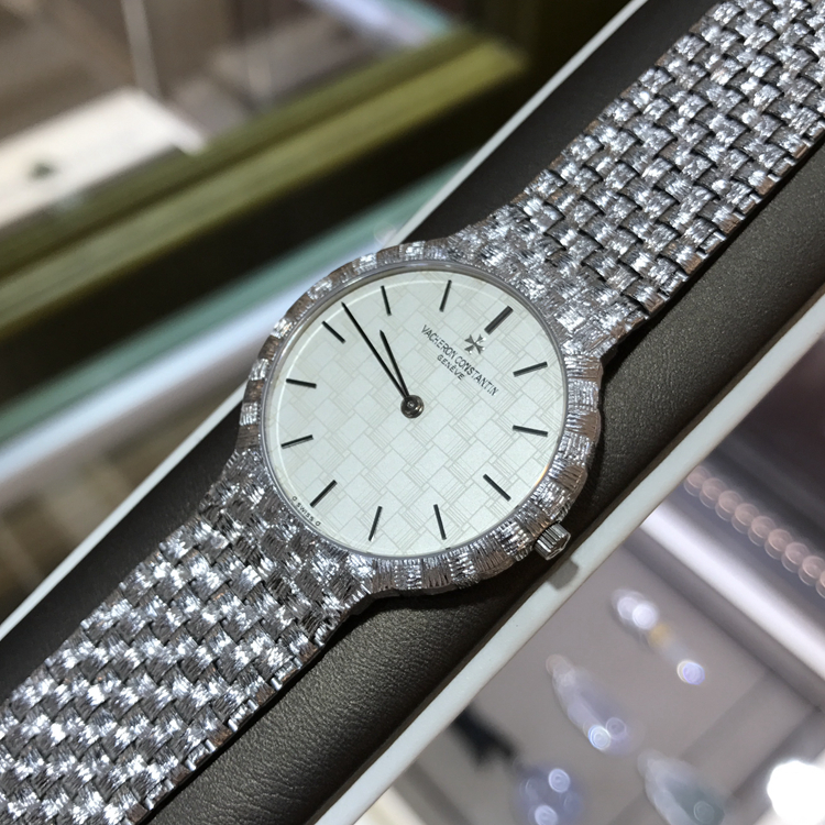 Vacheron Constantin 江诗丹顿,32毫米表径,18K白金表壳白金编织表带,白色格子暗纹面盘,手动上弦机械机芯。
