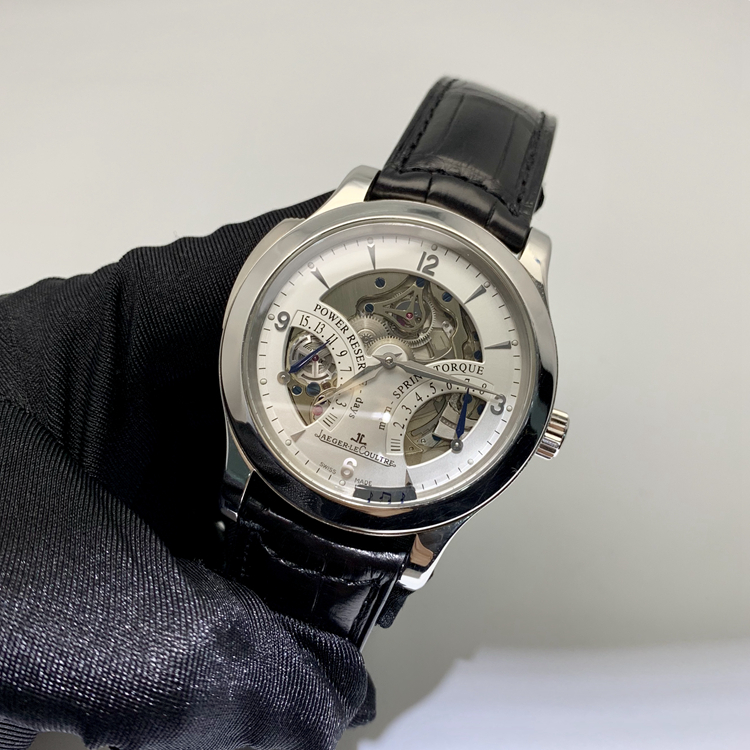 Jaeger-LeCoultre 积家 超卓复杂腕表系列,Q1646420。43毫米表径,PT950铂金表壳,银灰色表盘,三问报时功能,手动上弦机械机芯,15天动力超长储存。专柜定价:1540000元。 单表无附件。