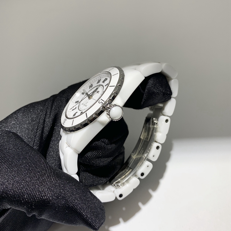 CHANEL 香奈儿 J12系列,H0970。38毫米表径,陶瓷表壳,白色面盘,日期显示功能,自动上弦机械机芯。专柜定价:41500元。