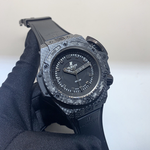 Hublot 宇舶 王者至尊系列,731.QX.1140.RX。45毫米表径,碳纤维表壳,黑色面盘,3点位置日期显示,自动上弦机械机芯,动力储备42小时,全球限量500支,专柜定价:184800元。