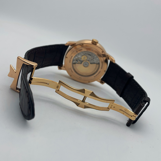 Vacheron Constantin 江诗丹顿 传袭系列,P86060/000R-8985。42.5毫米表径,背透,透明蓝宝石水晶表底盖,动力储备:40小时,18K玫瑰金表壳,昼夜指示,世界时功能。公价:380000.