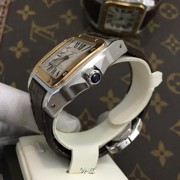 卡地亚Cartier桑托斯W20107X7,精钢间玫瑰金圈,表径44.2*35.6毫米,自动机械。