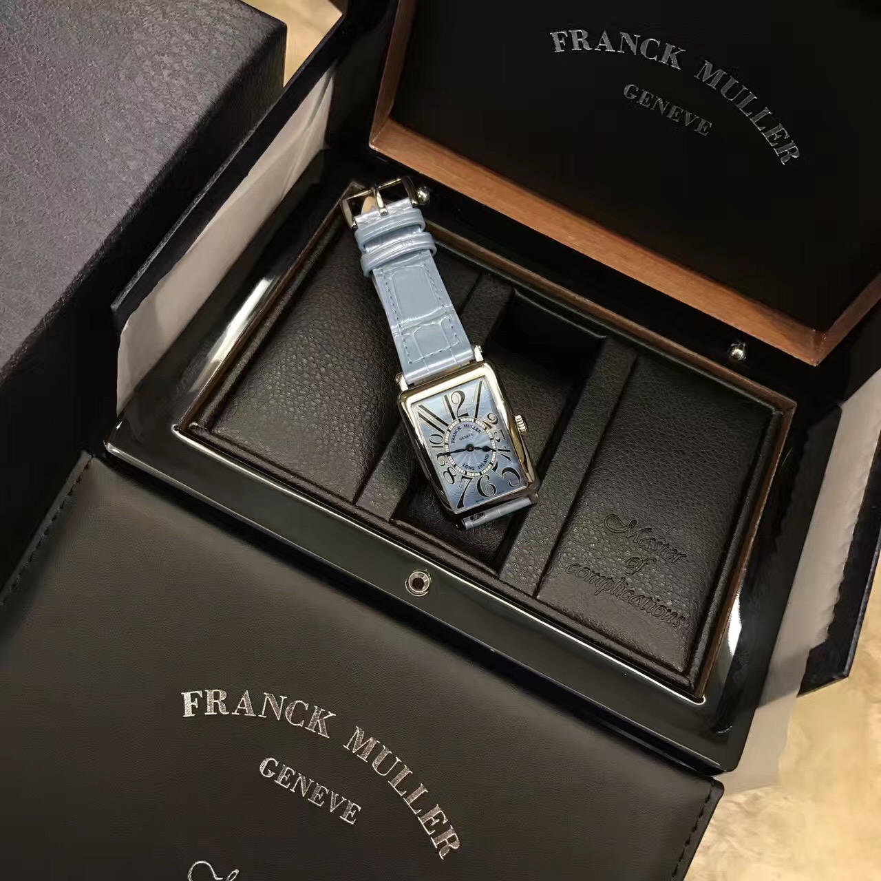 FRANCK MULLER 法兰克穆勒 Long Island 长岛系列,25.9*44毫米表径,精钢表壳,天空蓝面盘,精准石英机芯。