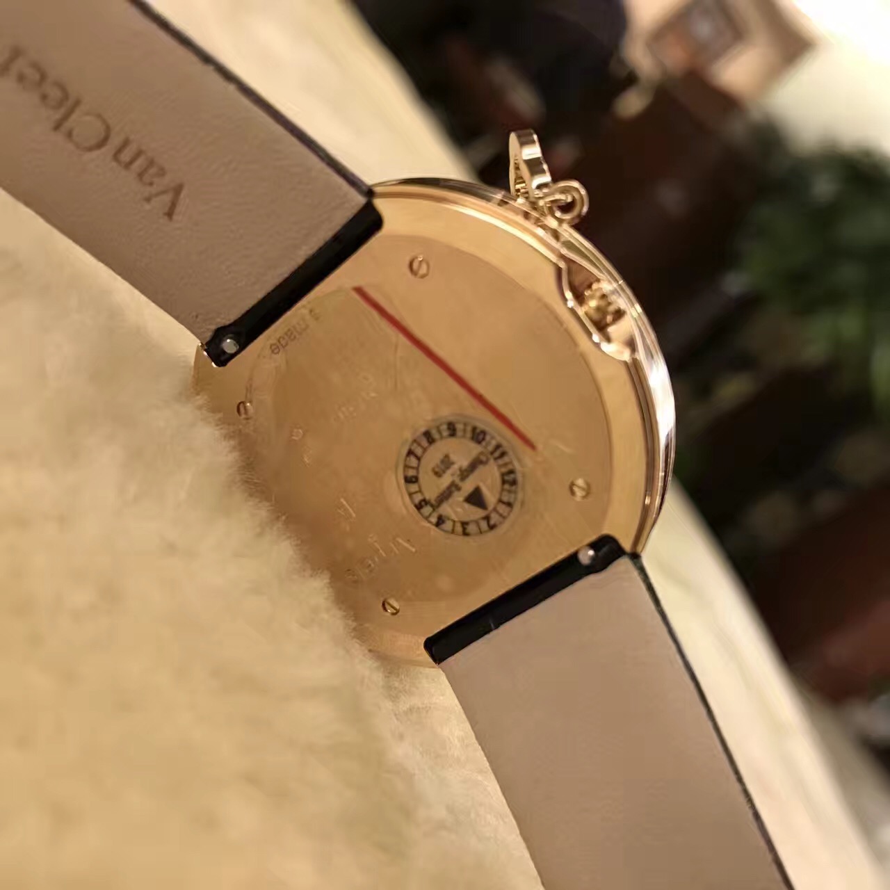 Van Cleef & Arpels 梵克雅宝 CHARMS系列,VCARM95100。四叶草可任意旋转,38mm玫瑰金女表钻石表圈,石英机芯,专柜售价196000元。